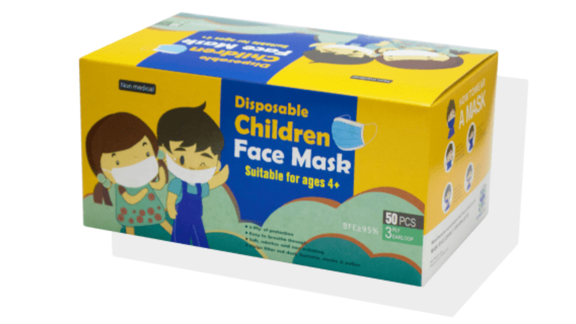 Barbijo infantil estampado hipoalergénico tricapa con adaptador para nariz.