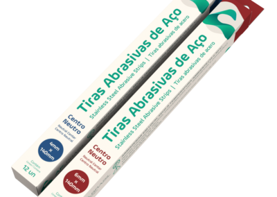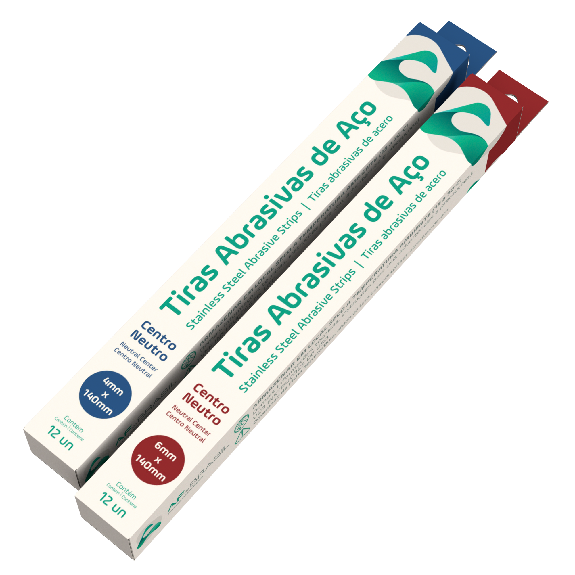 Las Tiras Abrasivas de Acero AF do Brasil son producidas en Acero Inoxidable y desarrolladas y destinadas para uso dental profesional, no se rompen y tienen mucha flexibilidad. Las Tiras Abrasivas de Acero Inoxidable AF do Brasil tienen un diferencial espectacular que es su centro neutro, sin abrasivos, facilitando la introducción en las superficies interproximales de los dientes, aportando mayor precisión y comodidad al paciente.